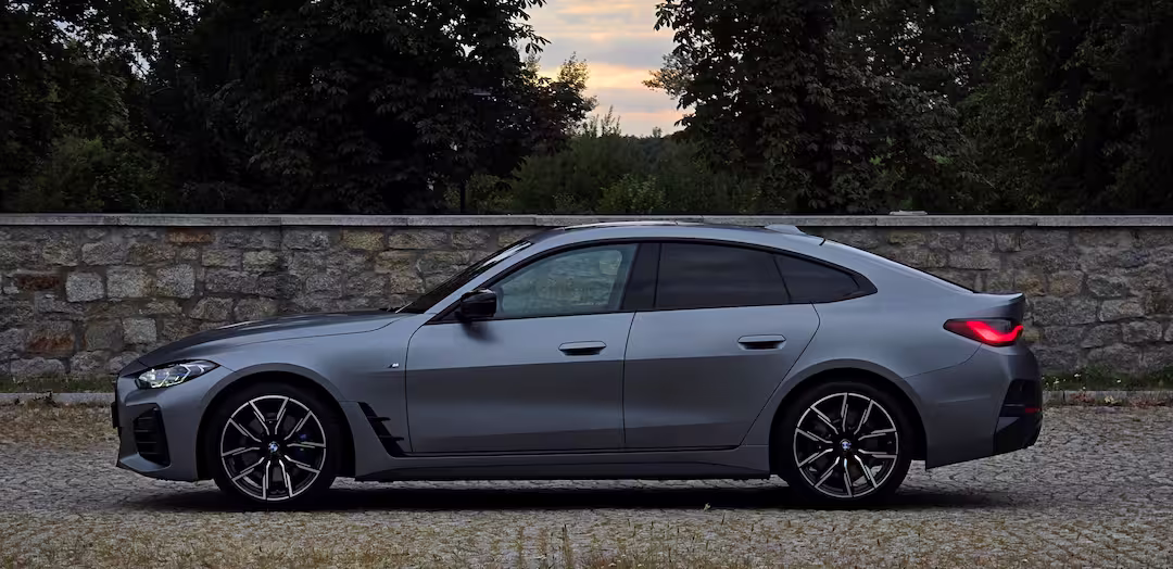 BMW 420i xDrive Gran Coupe z roku produkcji 2024 w unikatowym lakierze mat z palety Individual – Frozen Pure Grey.